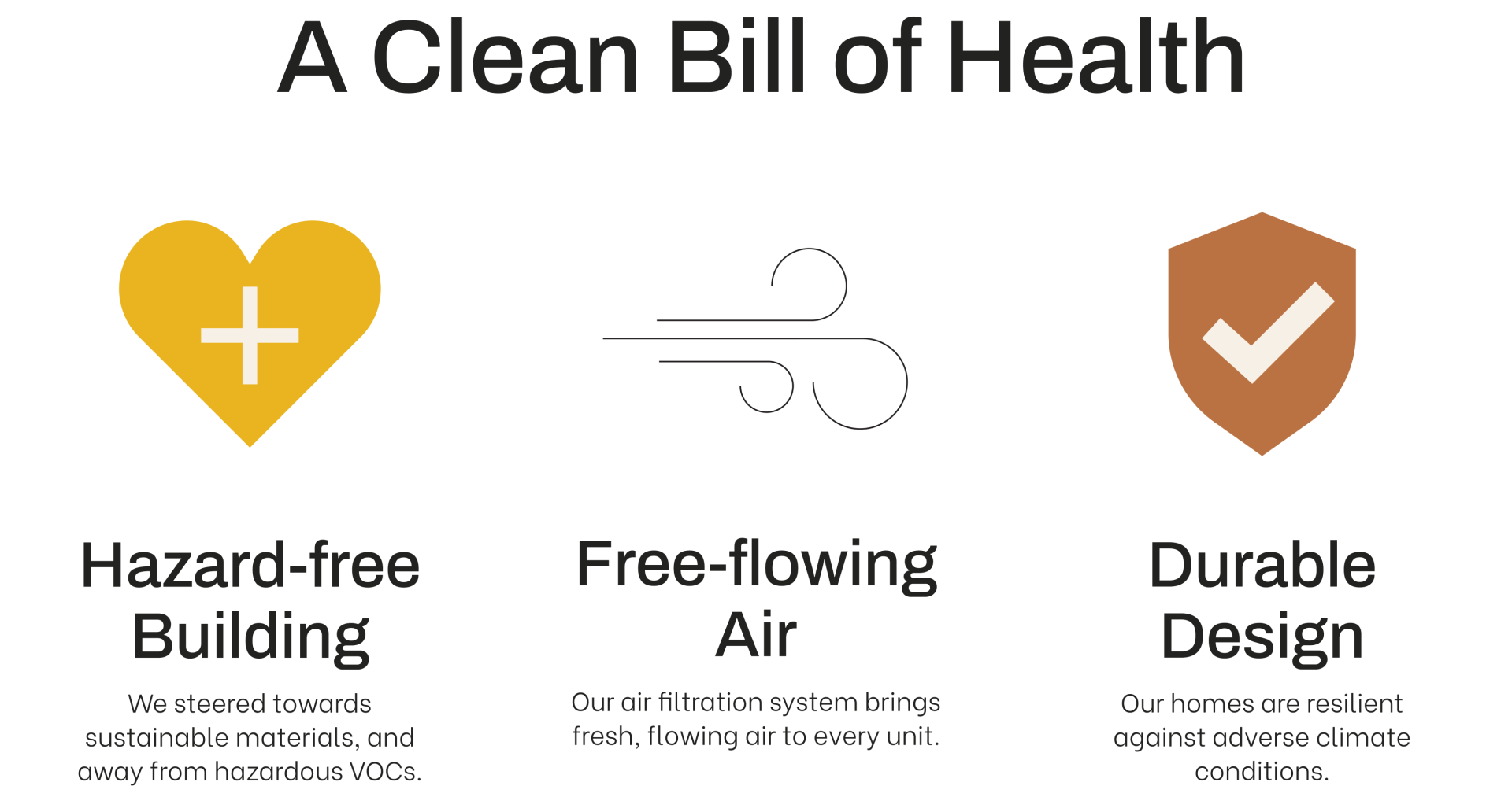 Be a part of this landmark initiative. Live in ease and efficient elegance, in a home built to breathe, built clean, and built to last.